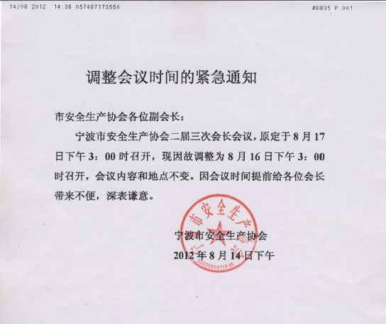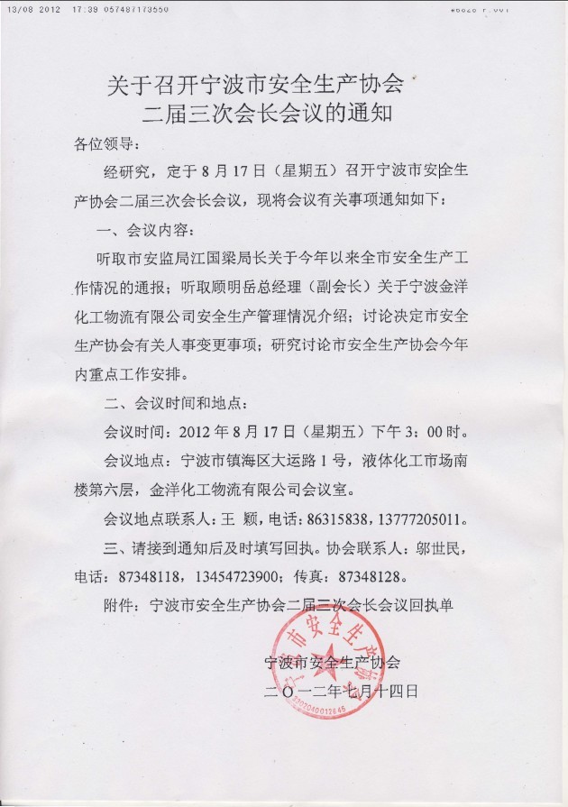 关于召开宁波市安全生产协会二届三次会长会议的通知