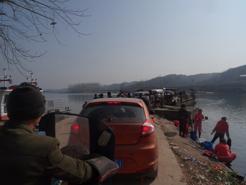 鹭鸶岩渡口在罗旧镇最大的渡口,由于两岸坡度小,一直以来都是人车混渡,对岸几个村的村民家用车都在此往返。为了改变这一状况,该镇采取了系列措施加强管理,可收效有限,未能从根本上改变。我在现场看到,两艘新式渡船都被拴在岸边的树上,周边水域垃圾成堆,应该是很久没有使用过了。相反,原来的大渡船差不多15分钟左右就能发航一次,摩托车在前,机动车在后,乘客站在两边,船工一边收费一边维护秩序,逐个叮嘱注意安全。
